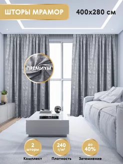 Шторы блэкаут 400х280 для гостиной в спальню Мрамор