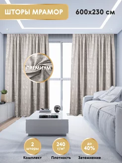 Шторы блэкаут 600х230 для гостиной в спальню Мрамор