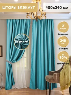 Шторы блэкаут в спальню комплект 400х240 бирюза