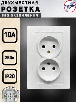 Розетка двойная без заземления МИРА, белый
