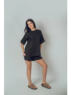 Костюм лен шорты и футболка
