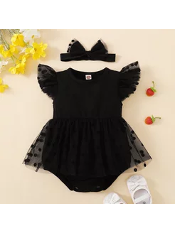 Боди для малыша Ромпер Песочник черный с повязкой