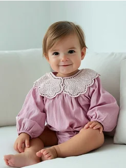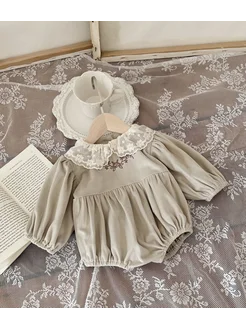 Нарядное велюровое платье-боди с вышивкой для новорожденной