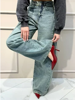 Джинсы широкие летние с высокой посадкой багги y2k потертые