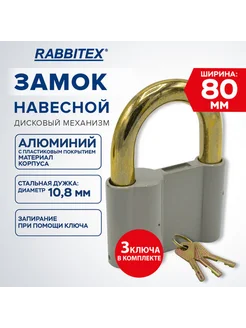 Замок навесной алюминиевый 80 мм "Стандарт", 3 ключа, RABBIT