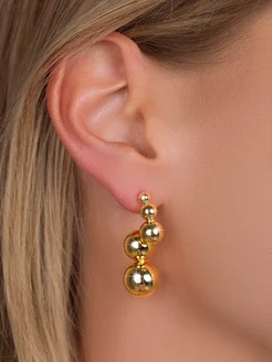 Длинные серьги гвоздики золотистые шары