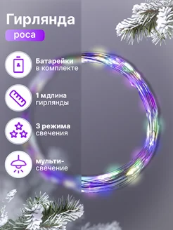 Новогодняя гирлянда роса 1 метр на батарейках цветная
