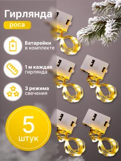 Новогодняя гирлянда роса 1 метр 5 штук желтая