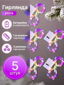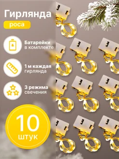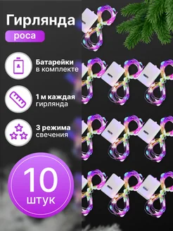 Гирлянда роса 1 метр набор 10 штук цветная на батарейках