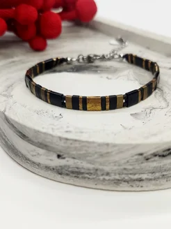 Браслет из японского бисера Miyuki Tila «Черное золото»