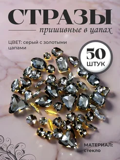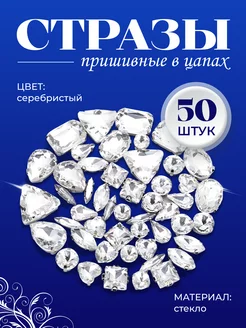 Стразы серебро пришивные в цапах для рукоделия 50 шт