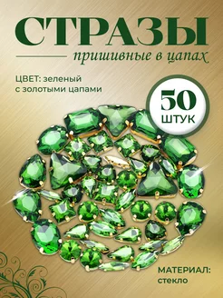 Стразы зеленые пришивные в цапах для рукоделия 50 шт