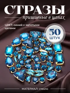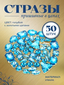 Стразы голубые пришивные в цапах для рукоделия 50 шт