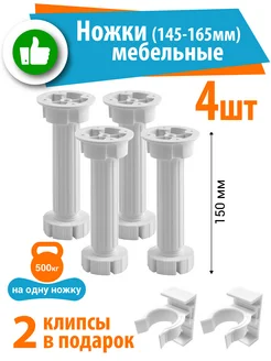 Ножки для мебели регулируемые 15 см 4 шт Пластиковые