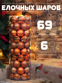 Елочные шары набор 6 см, 69 шт, оранжевый