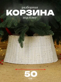 Корзина под елку 65*50 см, высота 25 см, бежевая