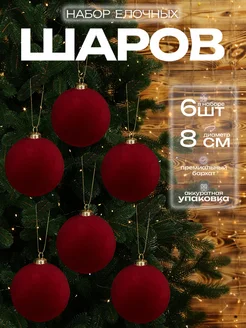 Шары на елку бордовые 8 см 6 шт, елочные игрушки набор
