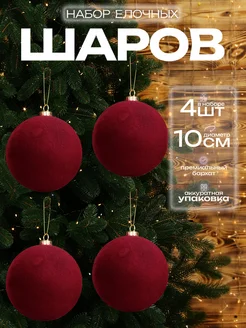 Шары на елку бордовые 10 см 4 шт, елочные игрушки набор
