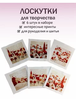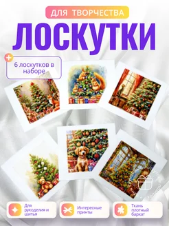 Лоскуты ткани для рукоделия Новый год елка и звери 6шт