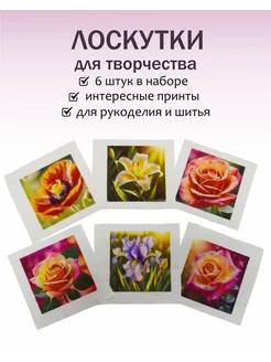 Лоскуты ткани для рукоделия Цветы розы и маки 6шт