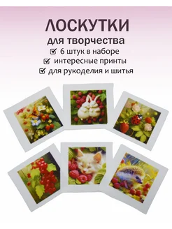 Лоскуты ткани для рукоделия Животные в ягодах 6шт