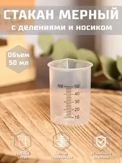 Мерный стакан с носиком и делениями пластиковый 50 мл