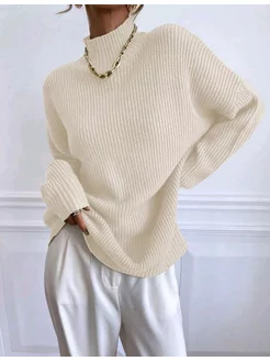 Свитер длинный с горлом вязаный