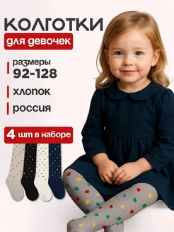 Колготки детские в горошек для девочек набор 4 шт школьные