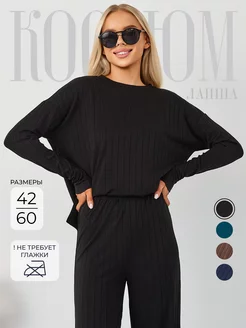 Костюм лапша домашний брючный в рубчик летний