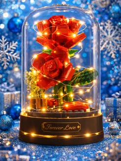 Конструктор музыкальная шкатулка Красные розы с гирляндой