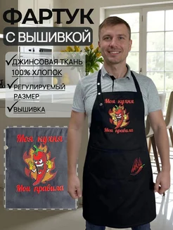 Фартук c вышивкой из плотной джинсовой ткани 100% хлопок