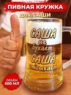 Именная пивная кружка Саша не бухает отдыхает, 0,5 л подарок