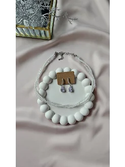 Набор украшений - колье и серьги жемчужные и прозрачные