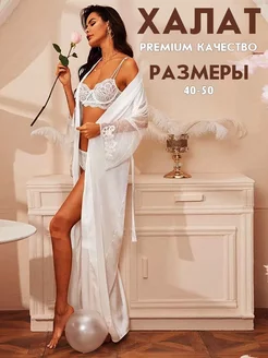 Халат домашний кимоно длинный с запахом пеньюар