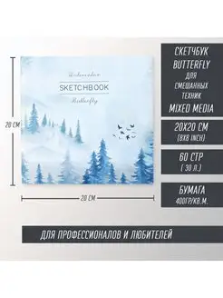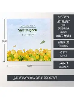 Скетчбук Баттерфляй для акварели 20х20см, 60 страниц