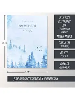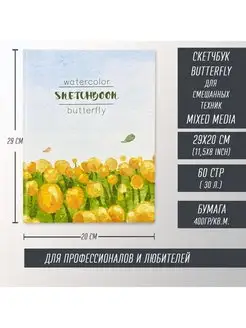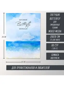 Скетчбук Баттерфляй для акварели 20х15см 60 страниц