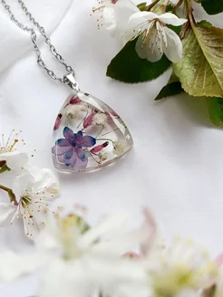 Кулон с сухоцветами из эпоксидной смолы ручной работы