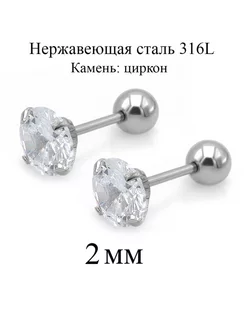 Серьги гвоздики 2 мм из медицинской стали