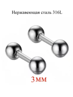 Серьги гвоздики 3 мм из медицинской стали