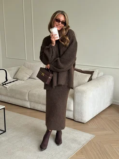 Костюм теплый вязаный трикотажный с юбкой