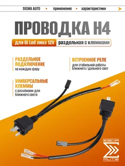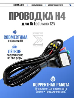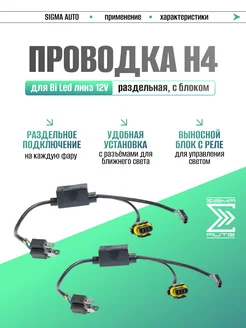 Проводка с реле для линз в цоколь Н4 (12V) комплект 2шт