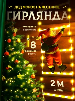 гирлянда дед мороз на лестнице