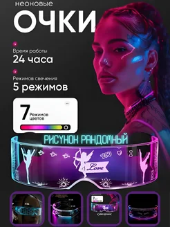 Неоновые очки светящиеся прозрачные в стиле киберпанк