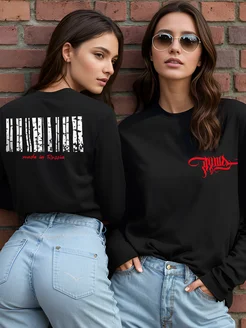 Лонгслив черный больших размеров оверсайз и принт надпись