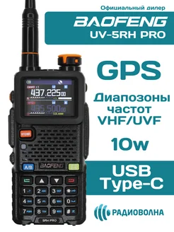 Рация Баофенг UV-5RH PRO 10W GPS цветной дисплей USB Type-C