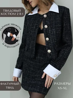 Костюм твидовый с укороченным жакетом и съёмным воротником