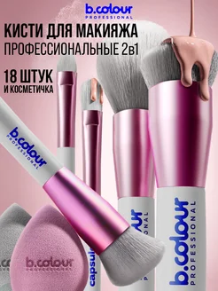 Кисти для макияжа профессиональные набор 18 шт, CAPSULE Pink…