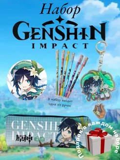 пенал геншин импакт Ху Тао (значок, ручка, брелок)