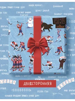 Новогодняя упаковочная бумага "Хоккей", двухсторонняя