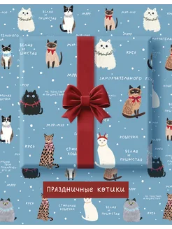 Новогодняя бумага для упаковки подарков "Праздничные коты"